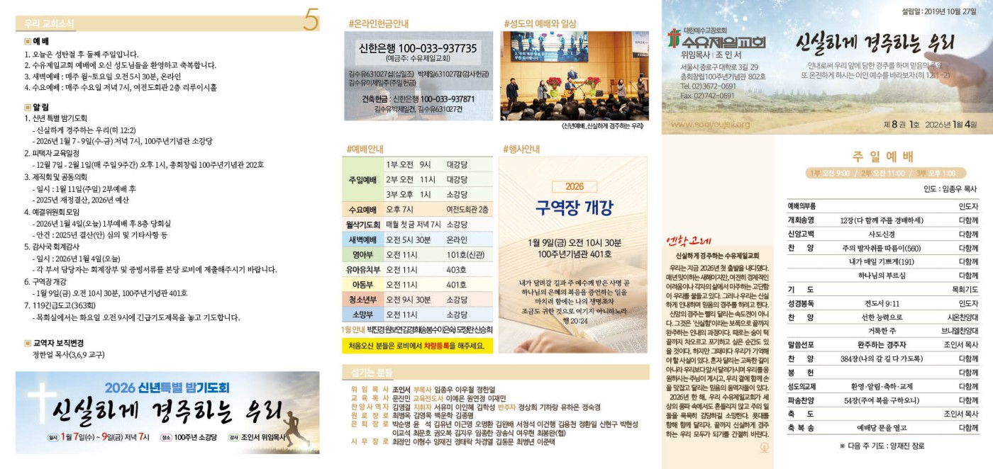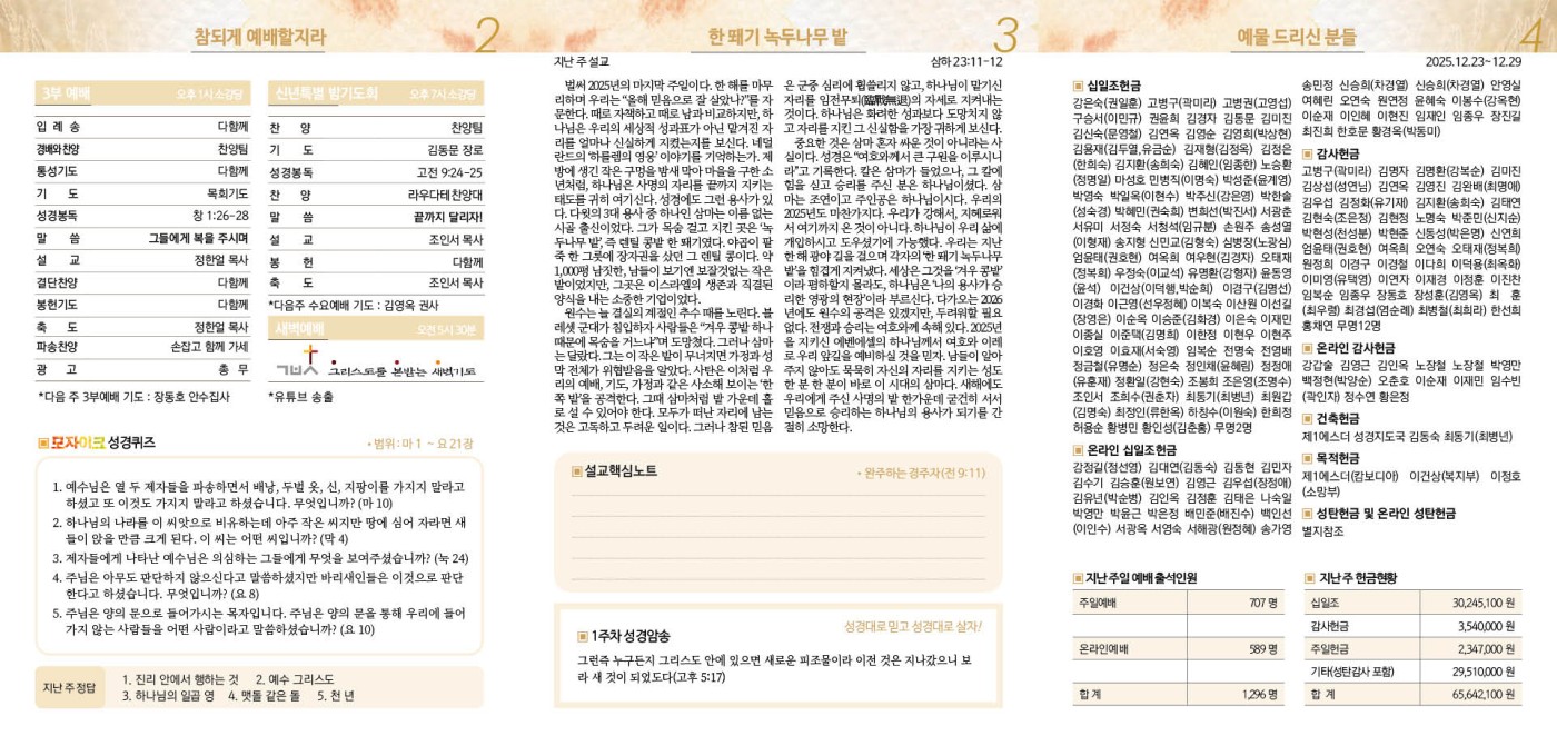 1월 4일 주보 페이지 정보 작성자 임종우목사 댓글 0건 조회 738회 작성일 26-01-02 15:15 목록 본문 1월 4일 주보 이전글1월 11일 주보 26.01.09 다음글1월 1일 신년예배 순서지 25.12.24 댓글 0 댓글목록 등록된 댓글이 없습니다.