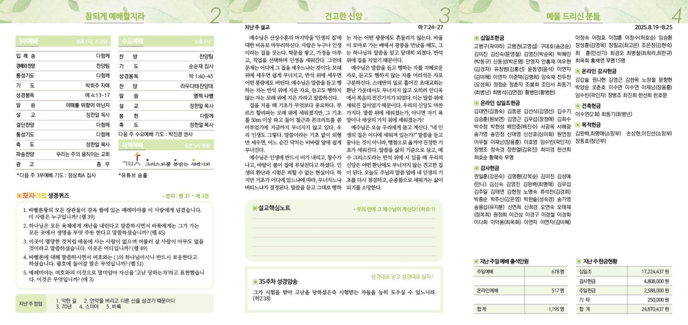 2025년 8월 31일 주보 페이지 정보 작성자 임종우목사 댓글 0건 조회 833회 작성일 25-08-29 14:05 목록 본문 2025년 8월 31일 주보 이전글2025년 9월 7일 주보 25.09.05 다음글2025년 8월 24일 주보 25.08.22 댓글 0 댓글목록 등록된 댓글이 없습니다.