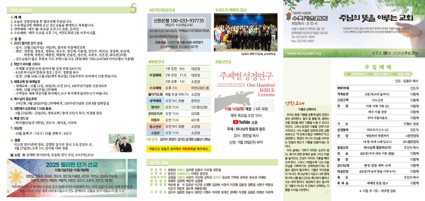 9월 21일 주보 페이지 정보 작성자 임종우목사 댓글 0건 조회 744회 작성일 25-09-19 14:49 목록 본문 9월 21일 주보 이전글9월 28일 주보 25.09.26 다음글2025년 9월 14일 주보 25.09.12 댓글 0 댓글목록 등록된 댓글이 없습니다.