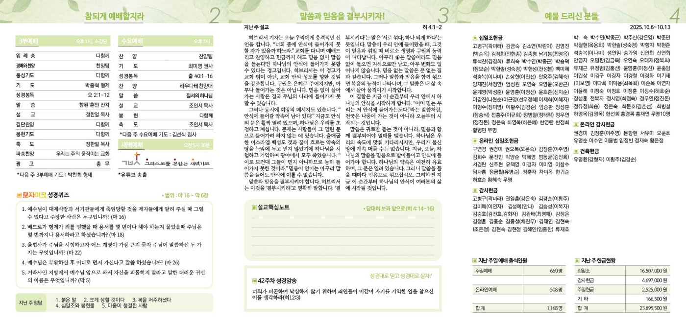10월 19일 주보 페이지 정보 작성자 임종우목사 댓글 0건 조회 731회 작성일 25-10-17 14:48 목록 본문 10월 19일 주보 이전글10월 26일 주보 25.10.24 다음글10월 12일 주보 25.10.10 댓글 0 댓글목록 등록된 댓글이 없습니다.