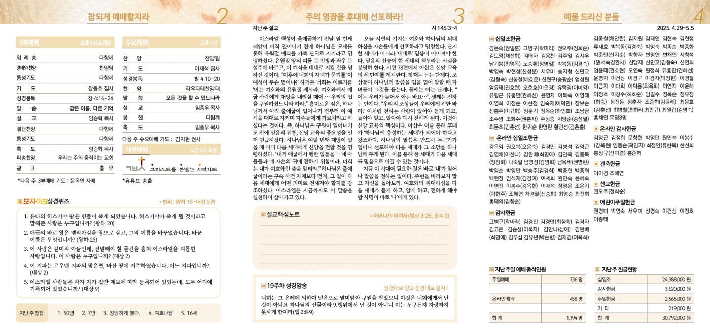 2025년 5월 11일 주보 페이지 정보 작성자 장병조 댓글 0건 조회 806회 작성일 25-05-09 15:21 목록 본문 0511 이전글2025년 5월 18일 주보 25.05.17 다음글2025년 5월 4일 주보 25.05.02 댓글 0 댓글목록 등록된 댓글이 없습니다.