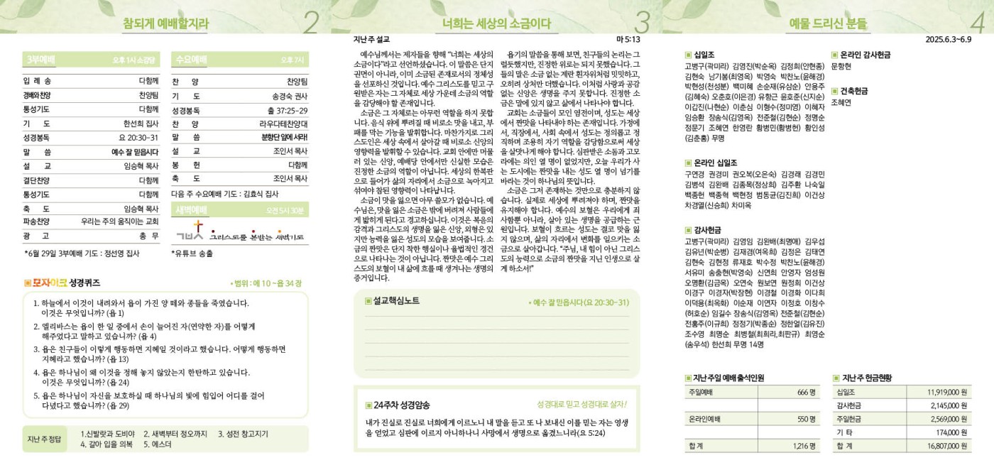 2025년 6월 15일 주보 페이지 정보 작성자 임종우목사 댓글 0건 조회 884회 작성일 25-06-13 13:30 목록 본문 2025년 6월 15일 주보 이전글2025년 6월 22일 주보 25.06.20 다음글2025년 6월 8일 주보 25.06.04 댓글 0 댓글목록 등록된 댓글이 없습니다.