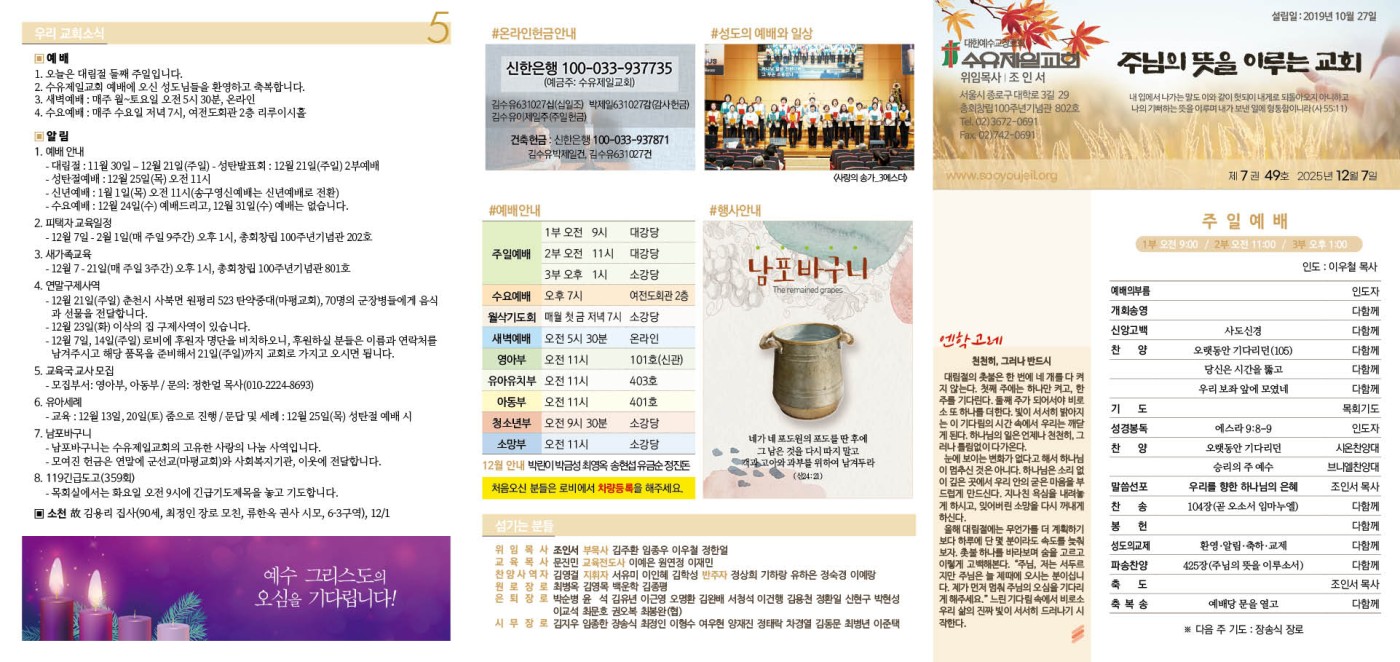 12월 7일 주보 페이지 정보 작성자 임종우목사 댓글 0건 조회 677회 작성일 25-12-05 15:12 목록 본문 12월 7일 주보 이전글12월 14일 주보 25.12.12 다음글11월 30일 주보 25.11.28 댓글 0 댓글목록 등록된 댓글이 없습니다.