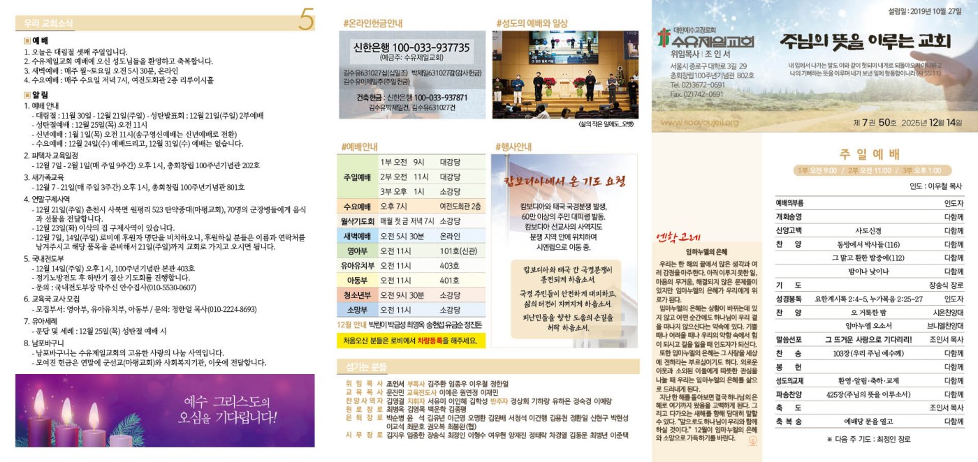 12월 14일 주보 페이지 정보 작성자 임종우목사 댓글 0건 조회 3,342회 작성일 25-12-12 15:33 목록 본문 12월 14일 주보 이전글12월 21일 주보 25.12.19 다음글12월 7일 주보 25.12.05 댓글 0 댓글목록 등록된 댓글이 없습니다.