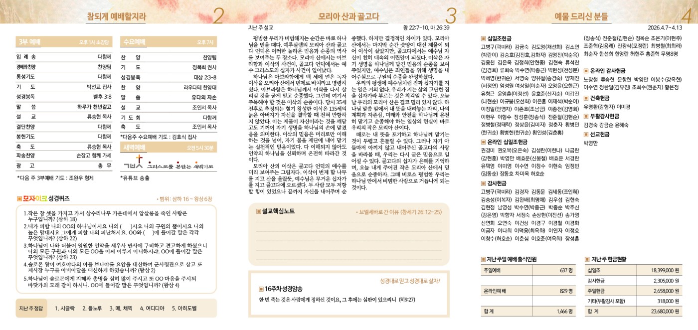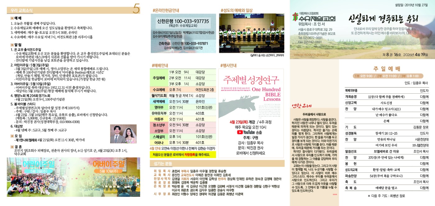 4월 19일 주보 페이지 정보 작성자 이우철 댓글 0건 조회 8회 작성일 26-04-17 16:05 목록 본문 4월 19일 주보 다음글4월 12일 주보 26.04.10 댓글 0 댓글목록 등록된 댓글이 없습니다.